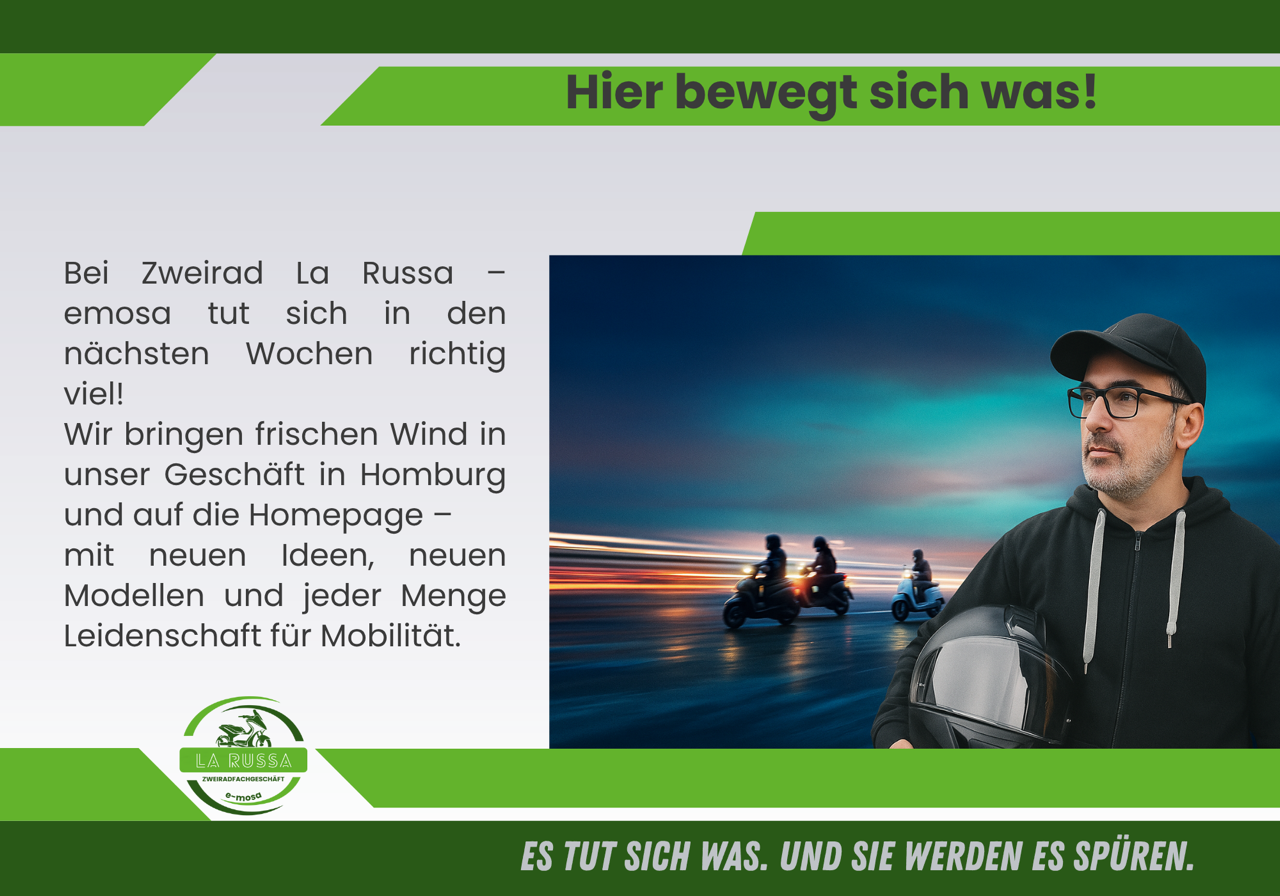 Erleben Sie das italienische Lebensgefühl, die Dolce Vita, und cruisen Sie mit Stil durch die Straßen! Bei e-mosa dreht sich alles um Leidenschaft, Freiheit und die Freude am Fahren. Kommen Sie vorbei, lassen Sie sich inspirieren und finden Sie Ihr Traumrad!